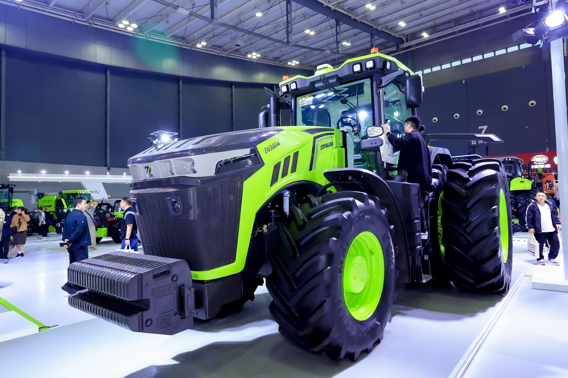 中聯(lián)重科自主研發(fā)的首款380馬力DV3804混合動(dòng)力拖拉機(jī),則具有綠色智能、高效精準(zhǔn)的亮點(diǎn)。它采用柴電混動(dòng)系統(tǒng),可應(yīng)對多種作業(yè)工況,為用戶帶來非凡的收益;配備0~40km/h區(qū)間無極變速箱,作業(yè)效率更高,變速體驗(yàn)更平順;行走采用電機(jī)直驅(qū)技術(shù),起步更平順,無動(dòng)力跳躍。整機(jī)采用國際化設(shè)計(jì)理念,讓駕駛更舒適、操作更便捷安全,并標(biāo)配了導(dǎo)航及輔助駕駛功能,助力實(shí)施精準(zhǔn)農(nóng)業(yè)。
