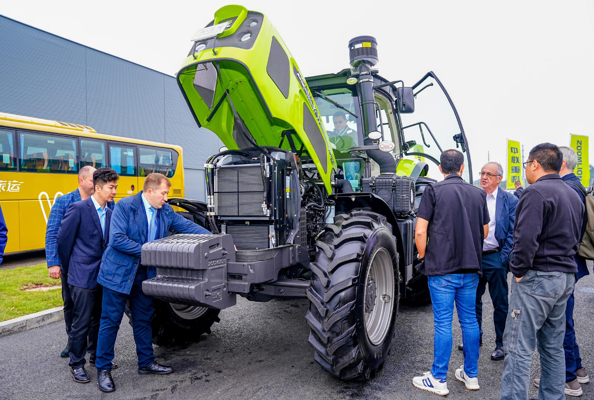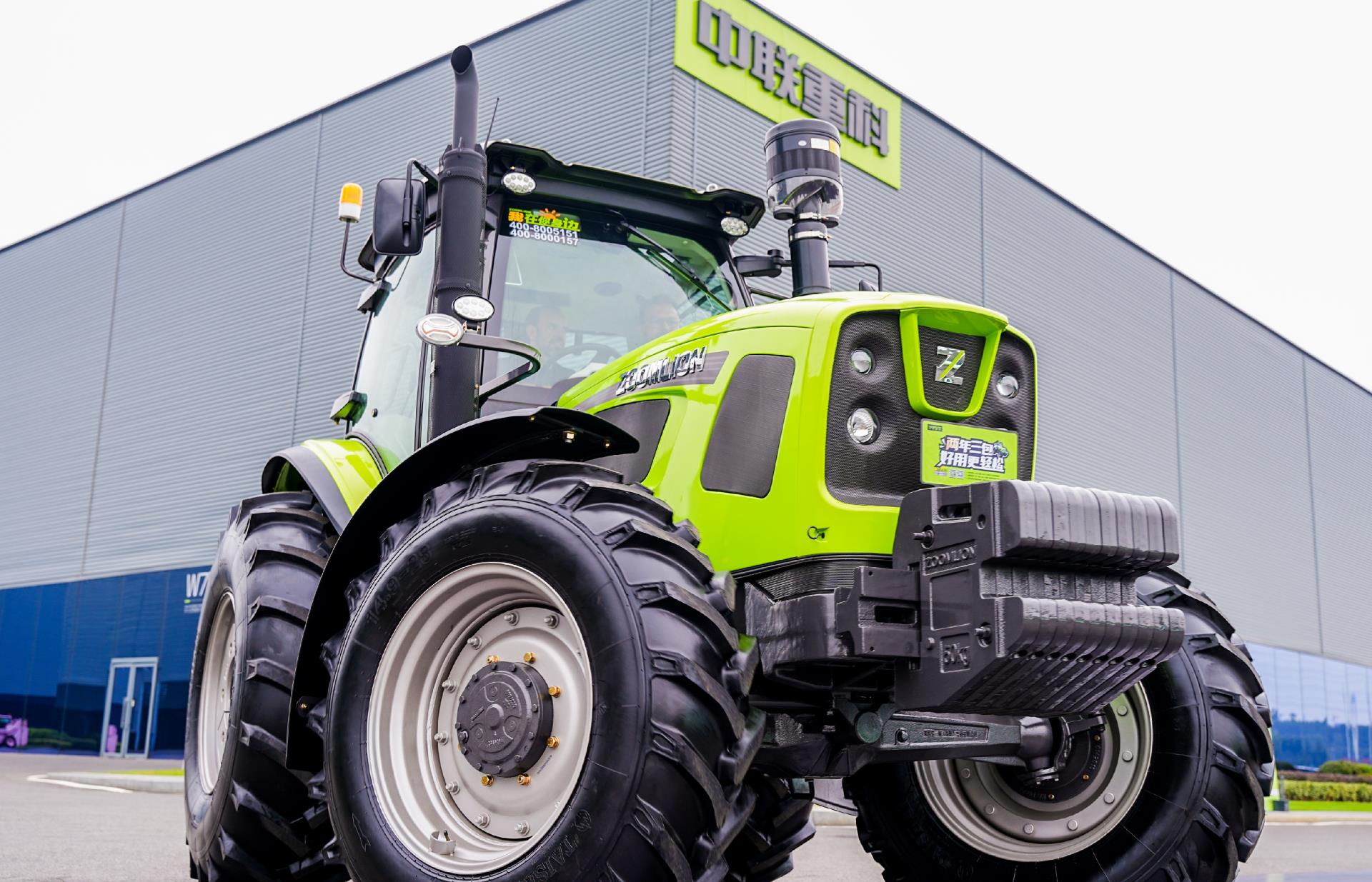△海外嘉賓在中聯(lián)智慧產(chǎn)業(yè)城試駕中聯(lián)重科拖拉機(jī)