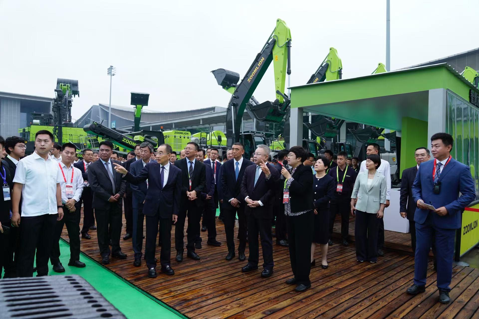 Δ中聯(lián)重科黨委書記、董事長(zhǎng)、CEO詹純新陪同湖南省委書記沈曉明參觀中聯(lián)重科展區(qū)