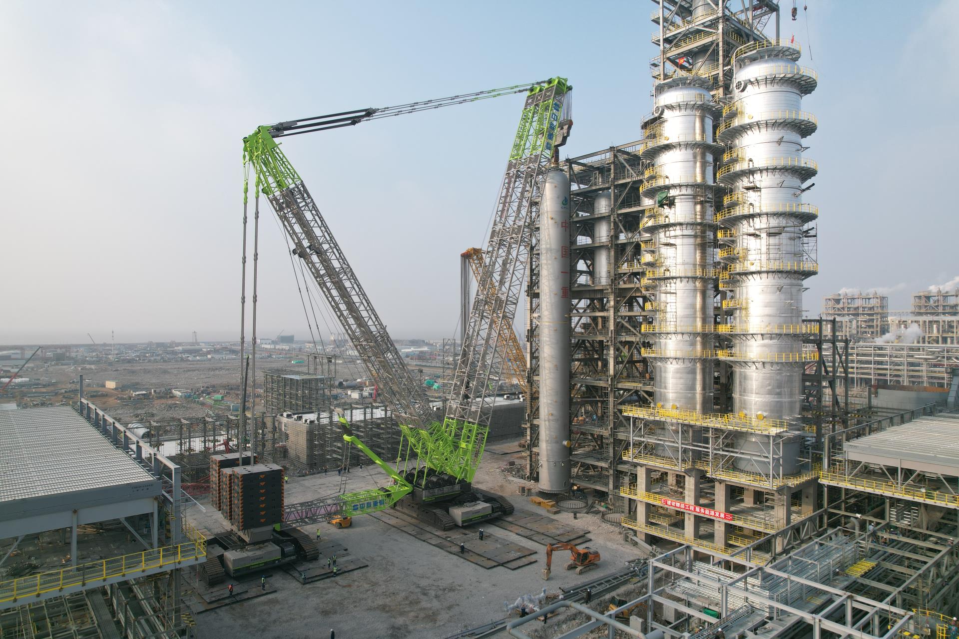 其中,中聯(lián)重科ZCC89000履帶起重機主要應用于石化、核電、風電吊裝等領(lǐng)域,是全球首臺能滿足石化3000噸級以上漿態(tài)床吊裝的履帶起重機。該產(chǎn)品自投入市場便馳騁于各大項目施工現(xiàn)場,創(chuàng)造了“履帶起重機單機吊裝超3000噸的**重紀錄”“單臺履帶起重機6天吊裝近萬噸的速度紀錄”等多個施工紀錄。