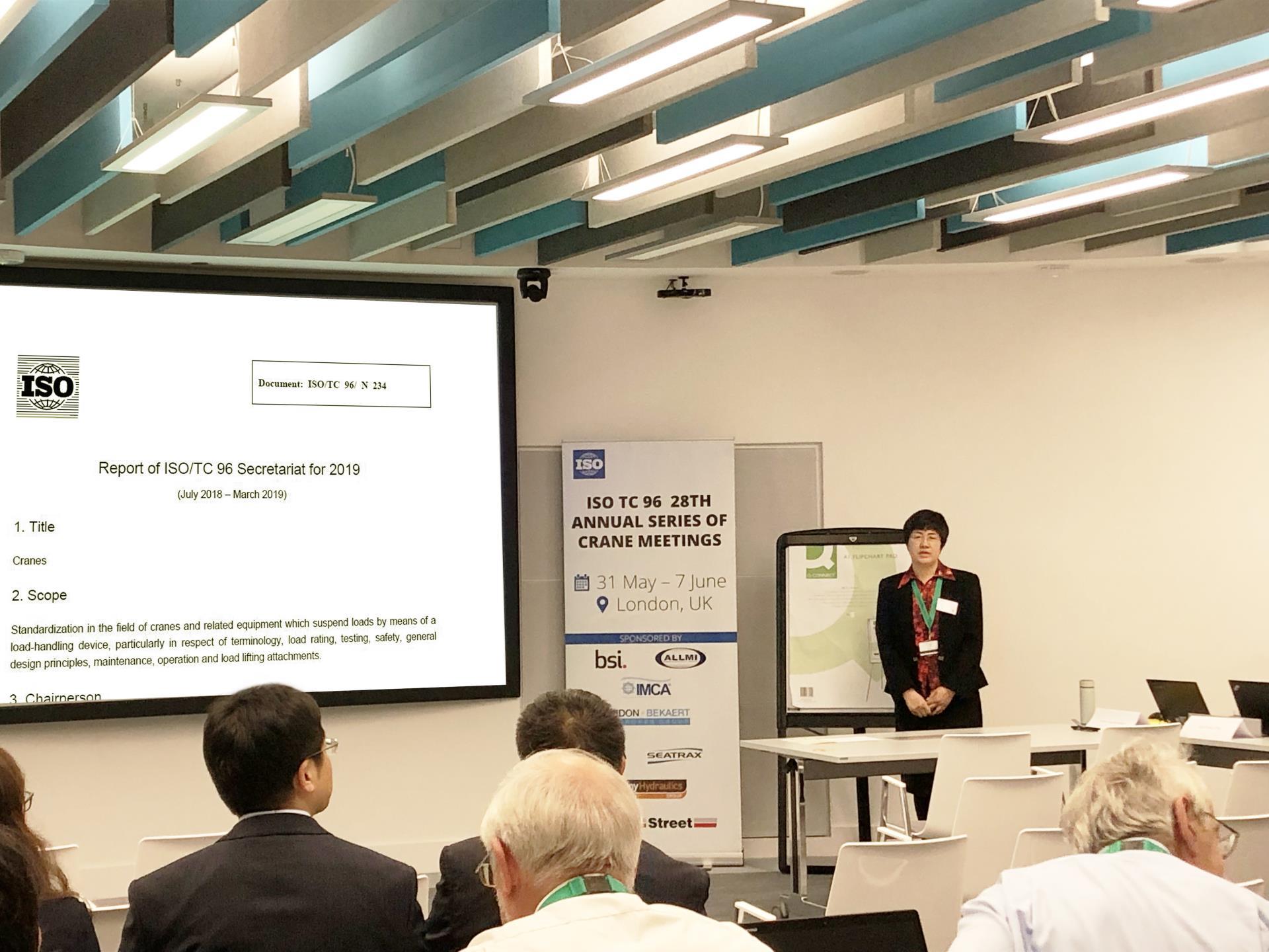 5月31日至6月7日,ISO/TC96(國際標(biāo)準(zhǔn)化組織起重機技術(shù)委員會)**28屆年會在英國倫敦召開,來自中國、德國、美國、英國、法國、日本等13個成員國近80位代表出席會議。作為ISO/TC96秘書處承擔(dān)單位,中聯(lián)重科三位代表全程參會,ISO/TC96秘書、中聯(lián)重科副總裁、總工程師付玲博士在全會上作秘書處工作報告。年會期間,由中聯(lián)重科主導(dǎo)制修訂的2項國際標(biāo)準(zhǔn)再獲新進展。