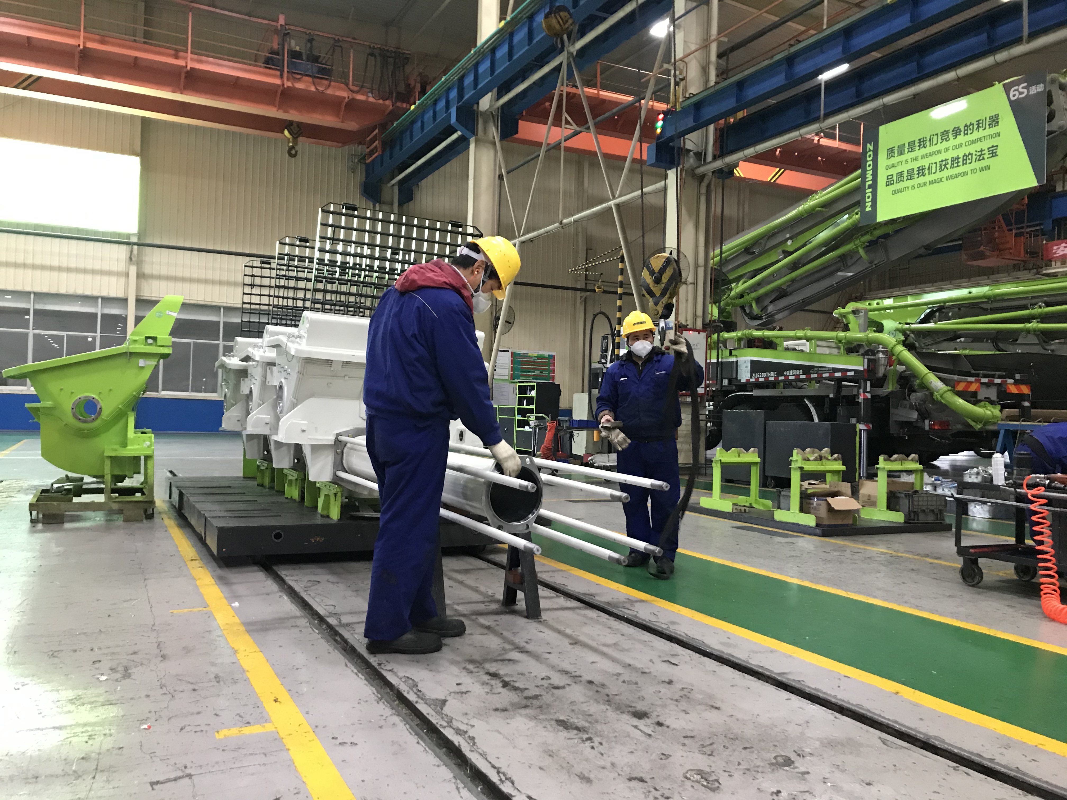 “我們裝配以后,再經(jīng)過幾道工序以及調(diào)試,這臺拖泵就完成了,在中聯(lián)重科混凝土泵送機械分公司的總裝車間里,一名戴著口罩的工人介紹道。