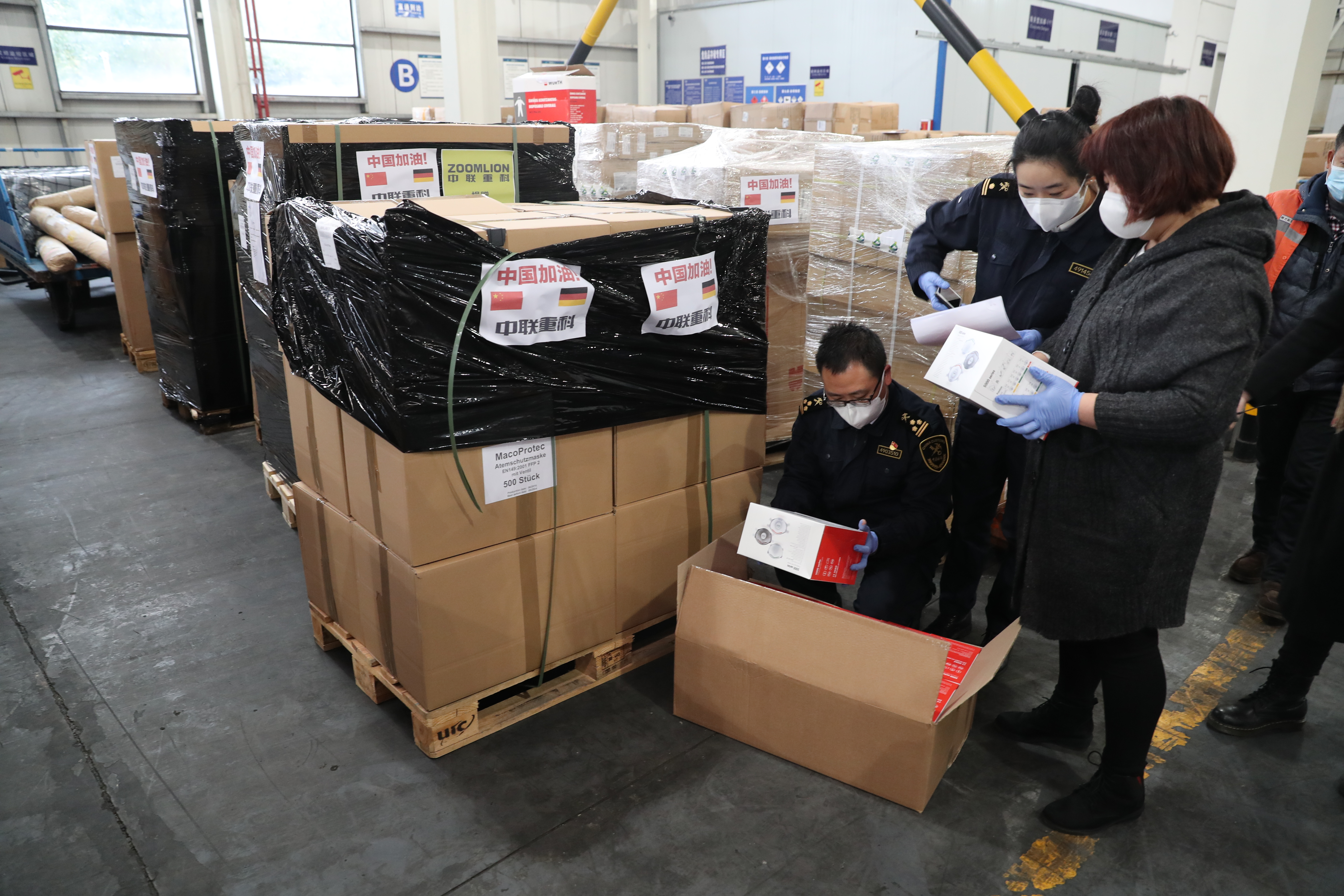 △中聯(lián)重科從德國(guó)采購(gòu)的逾13萬(wàn)件醫(yī)護(hù)物資抵達(dá)長(zhǎng)沙黃花機(jī)場(chǎng)