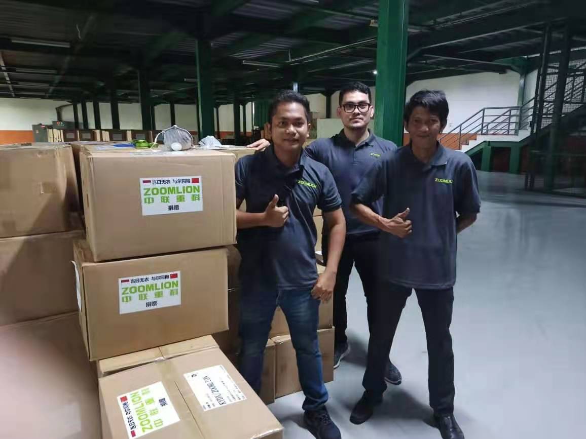 △中聯(lián)重科印尼員工打包醫(yī)療防護(hù)物資準(zhǔn)備登機(jī)