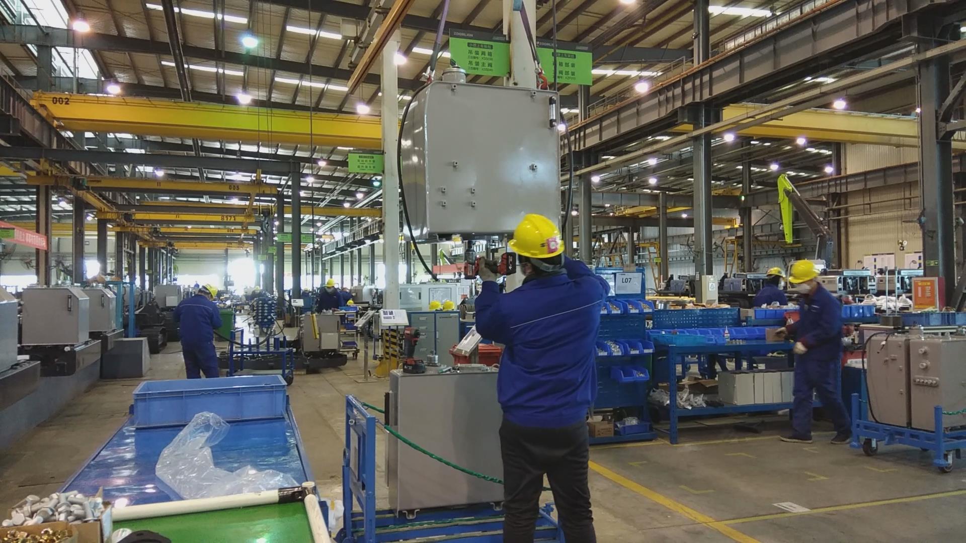 219日 中聯(lián)重科土方機(jī)械分公司渭南工業(yè)園的工人們戴著口罩有序生產(chǎn)