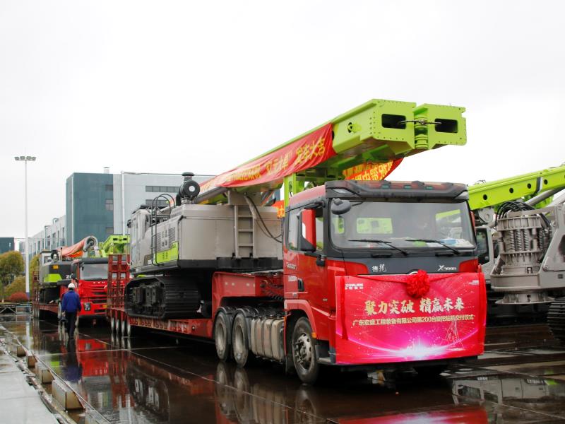 3月27日上午9時(shí)58分,中聯(lián)重科4.0系列旋挖鉆機(jī)產(chǎn)品批量發(fā)車暨廣東宏盛工程裝備有限公司**200臺(tái)中聯(lián)重科旋挖鉆機(jī)交付儀式在中聯(lián)重科上海工業(yè)園隆重舉行。