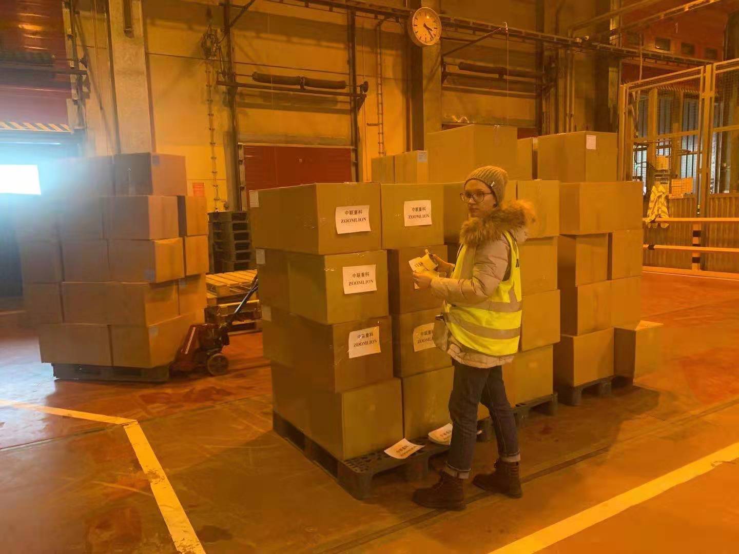 △2月初,中聯重科白俄員工在莫斯科機場寄運防疫物資