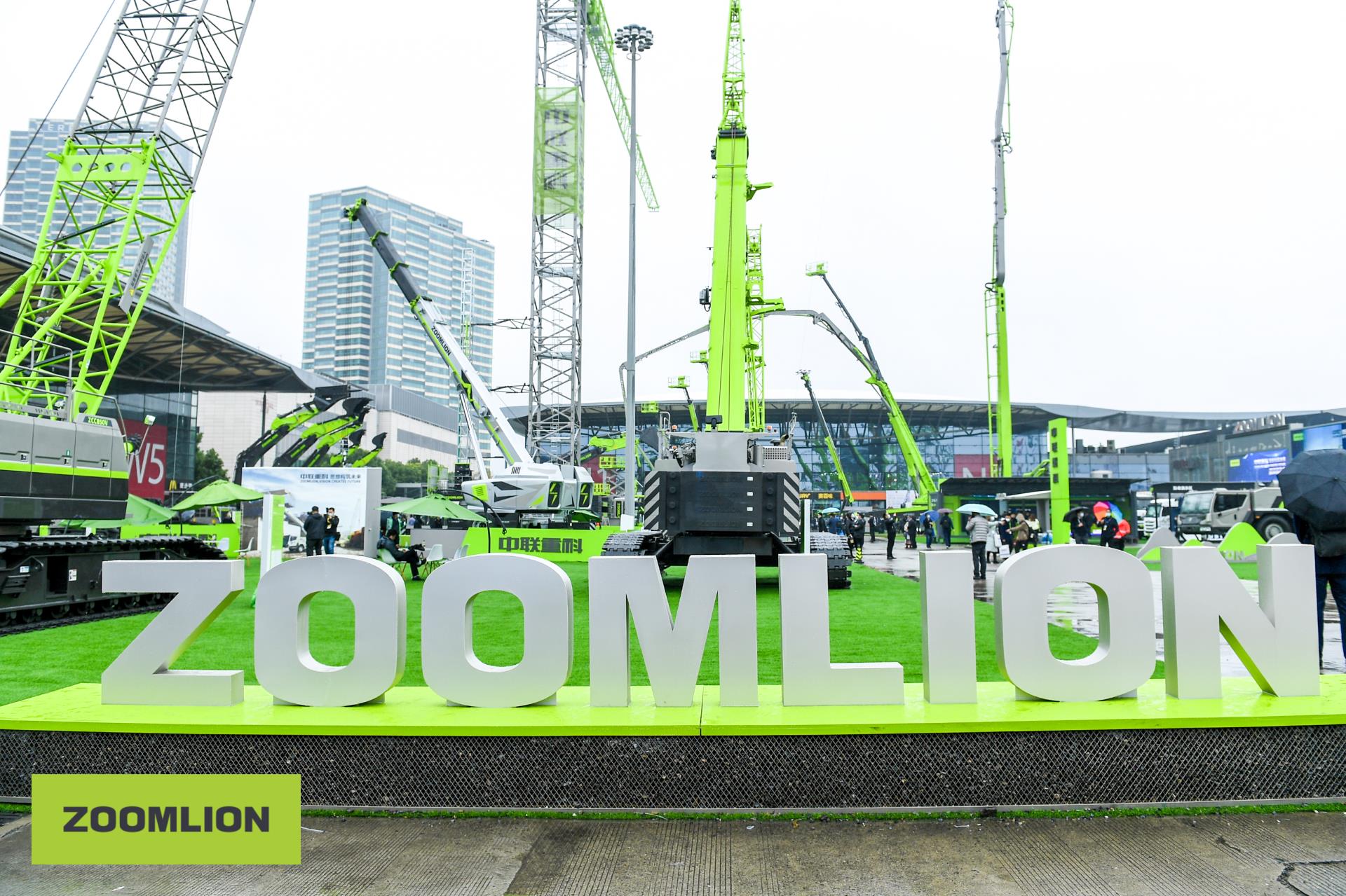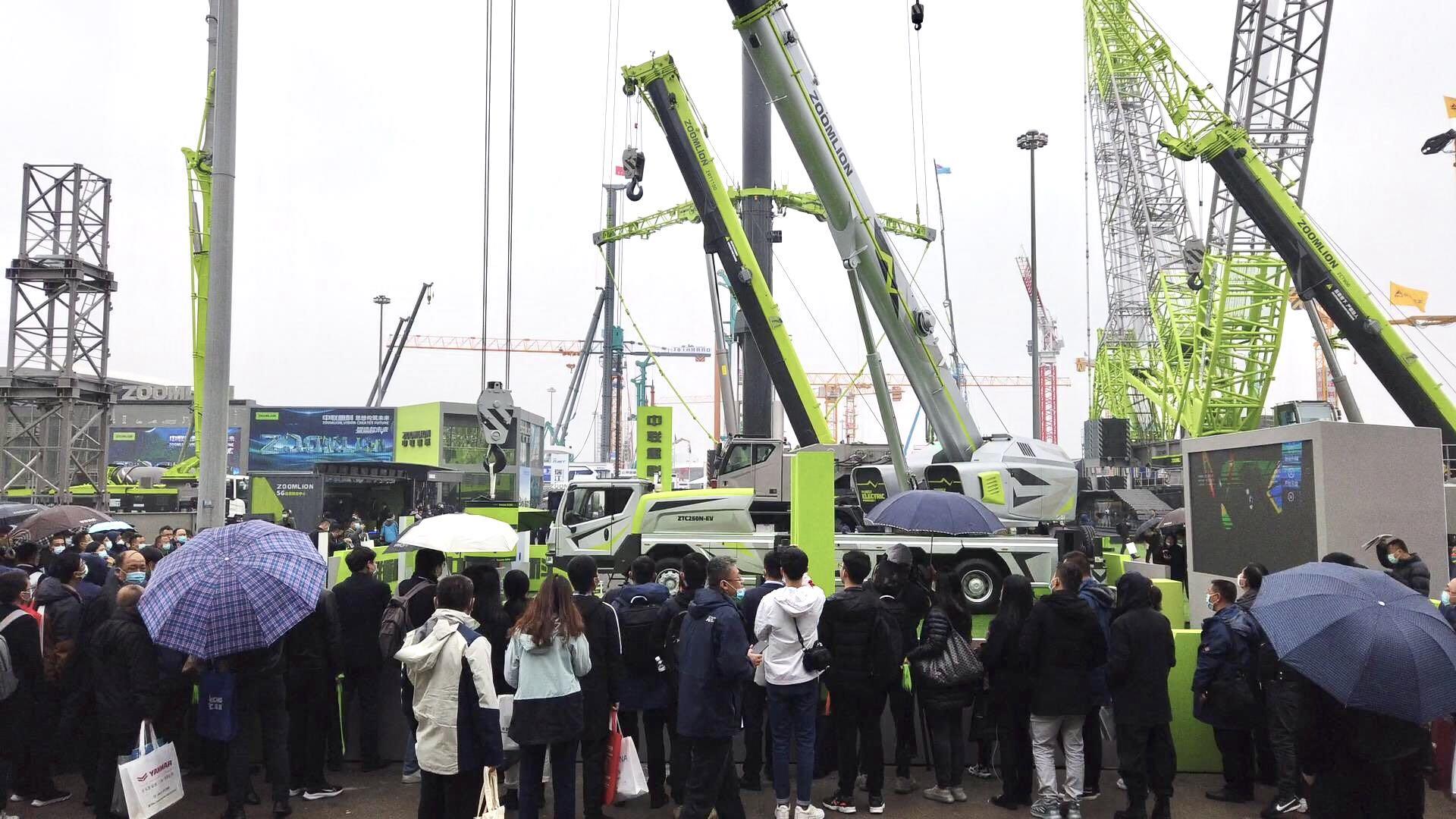 ▲中聯(lián)重科寶馬展展區(qū)成為一片“極光綠”的海洋