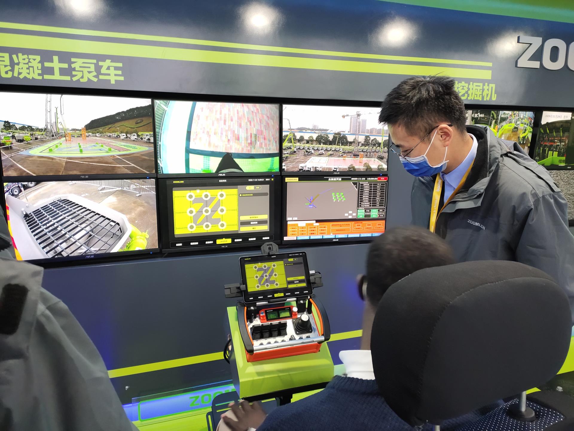 ▲觀眾現(xiàn)場(chǎng)體驗(yàn)中聯(lián)重科5G遠(yuǎn)程操作