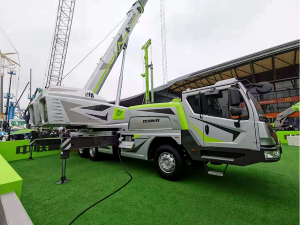 ▲中聯(lián)重科全球首臺(tái)整車純電驅(qū)動(dòng)汽車起重機(jī)ZTC250N-EV涂裝新奇,造型前衛(wèi)