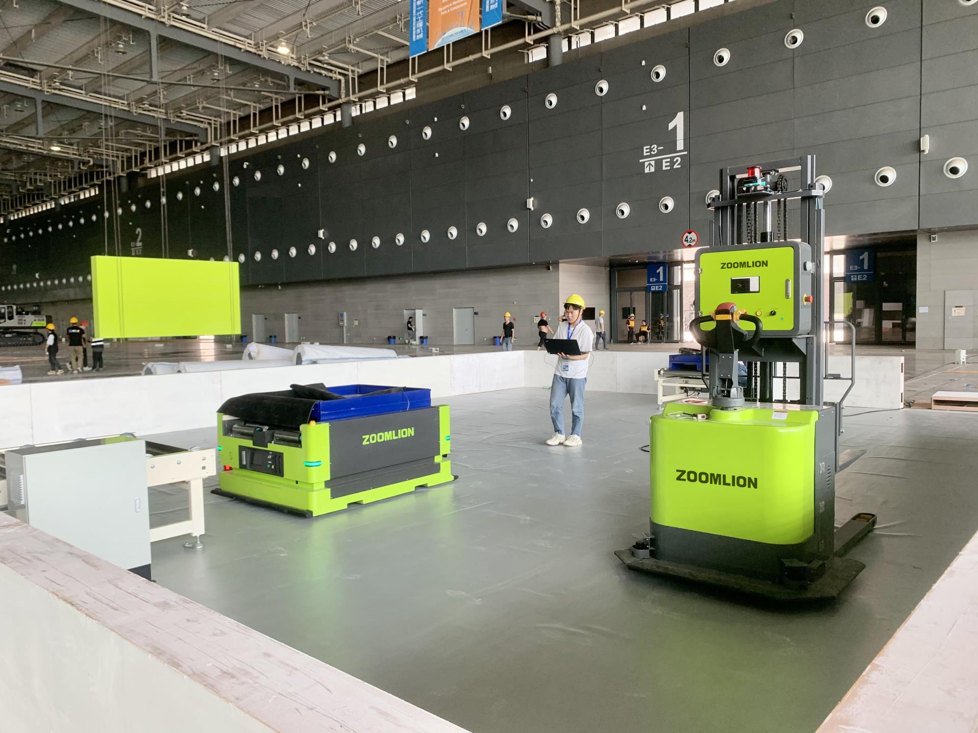 5月12日,中聯(lián)重科智能物流設(shè)備進(jìn)駐長沙國際會展中心室內(nèi)E3展館,開始了裝調(diào)工作。作為中聯(lián)重科智能物流設(shè)備的首次亮相,展會現(xiàn)場將濃縮展現(xiàn)中聯(lián)重科數(shù)字化工廠生產(chǎn)線的一部分,主要包括激光導(dǎo)航叉車AGV、激光導(dǎo)航滾筒AGV、動力滾筒線、管控系統(tǒng)及網(wǎng)絡(luò)支持等。