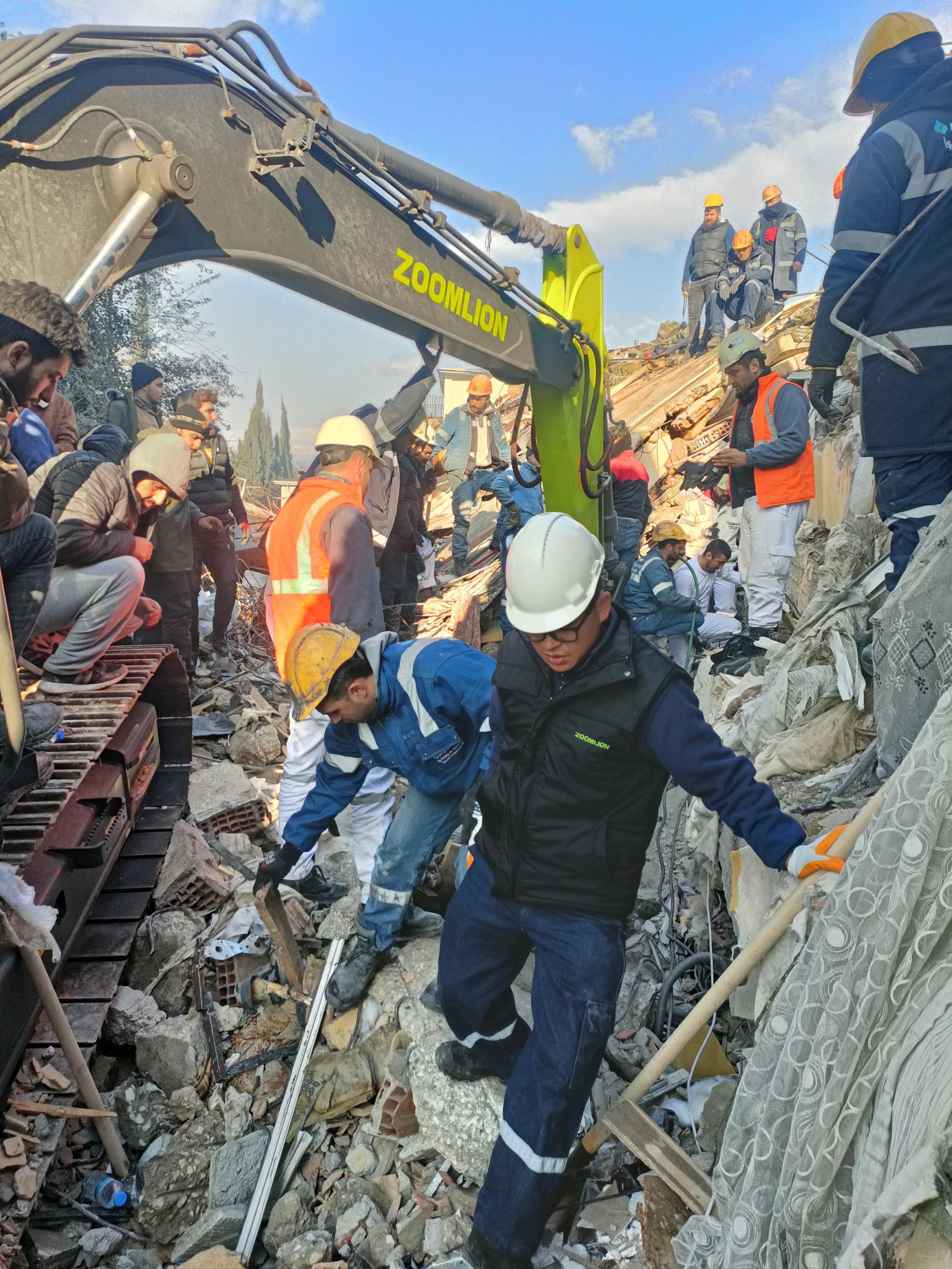 ▲中聯(lián)重科救援隊在土耳其地震災(zāi)區(qū)現(xiàn)場救援