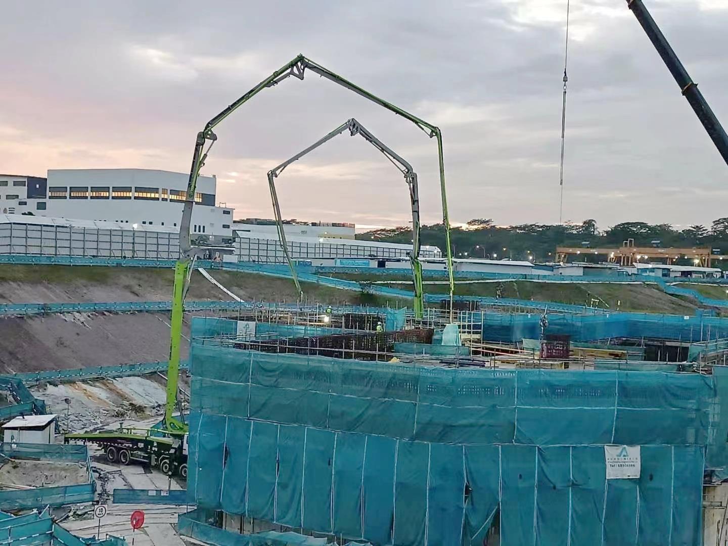 △中聯(lián)重科泵車群正在新加坡項(xiàng)目上施工