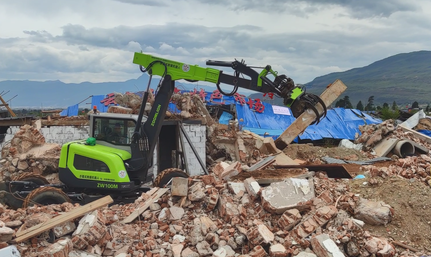 中聯(lián)重科高機動多功能模塊化救援裝備正在清理障礙