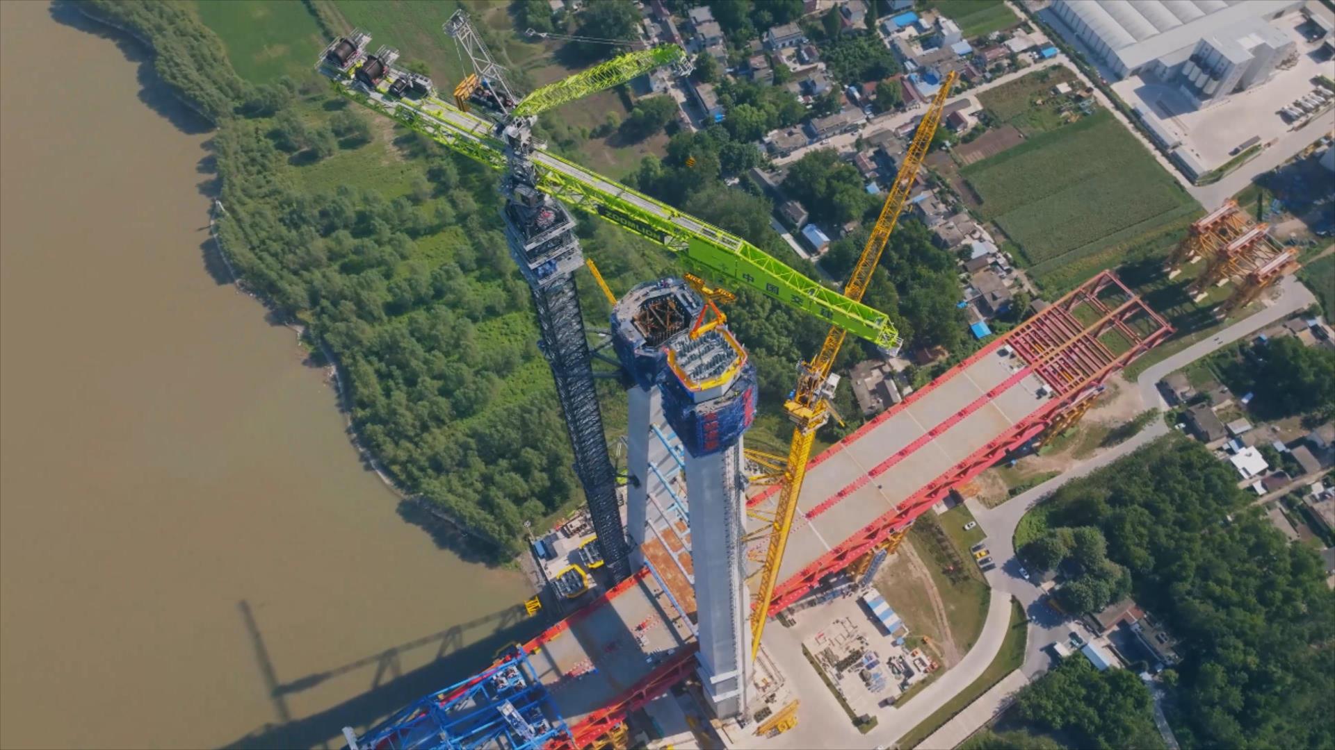 △全球**大塔機(jī)中聯(lián)重科R20000-720首吊馬鞍山公鐵兩用長江大橋