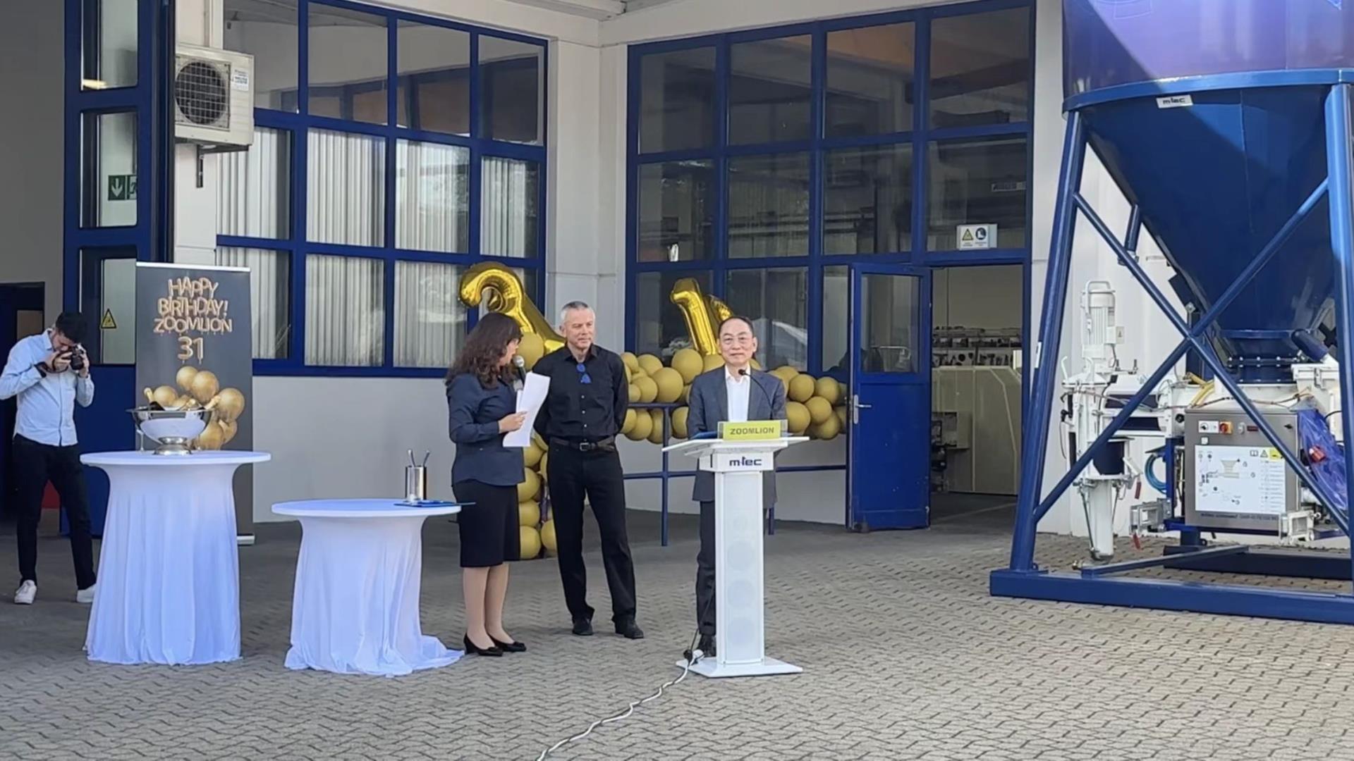 大家下午好!今天是中聯(lián)重科31歲生日,這是我們共同的節(jié)日。我很高興能在紐因伯格和m-tec的同事們一起慶祝公司的生日。也非常感謝m-tec的同事們的精心布置和周到安排。今天,不僅是在德國、在中國,還有在世界其他30多個國家的中聯(lián)重科園區(qū),大家都在用自己的方式慶祝中聯(lián)重科的生日。在這里,我代表中聯(lián)重科,向m-tec的全體同事致以節(jié)日的問候!向全球30多個國家的3萬名員工致以節(jié)日的問候!