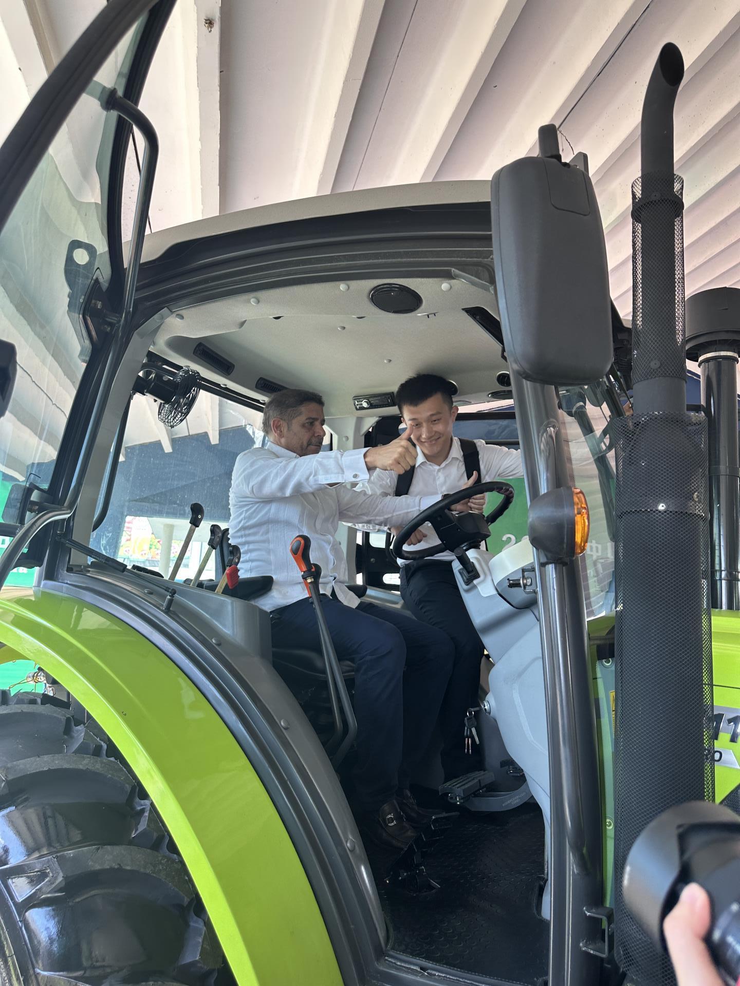 △多米尼加農(nóng)業(yè)部部長林博·克魯斯試乘中聯(lián)重科拖拉機