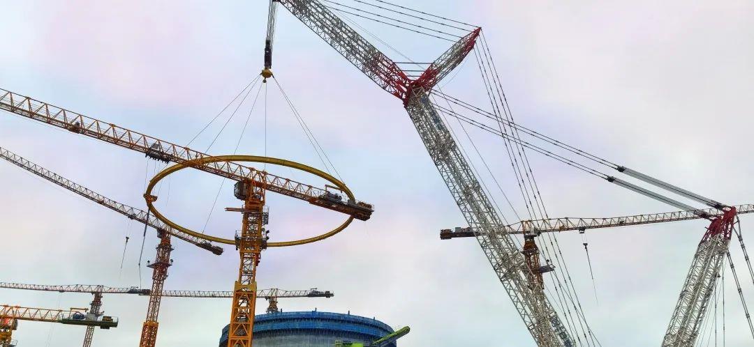 ▲中聯(lián)重科起重機(jī)正在吊裝昌江核電4號機(jī)組環(huán)梁環(huán)軌(圖片源于“華能昌江核電”公眾號)