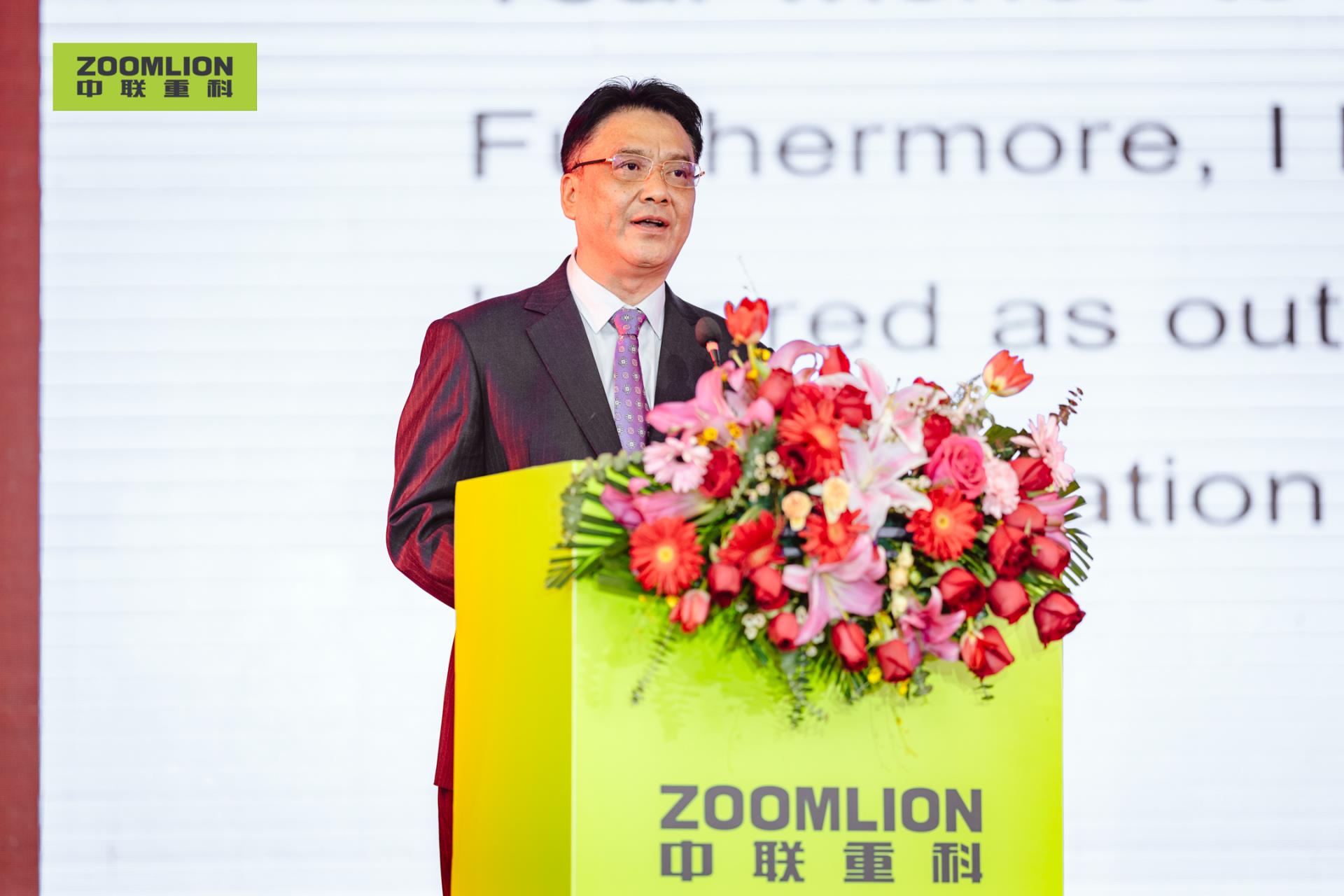 ▲中聯(lián)重科聯(lián)席總裁、中聯(lián)重科工程起重機公司總經(jīng)理羅凱在現(xiàn)場發(fā)言