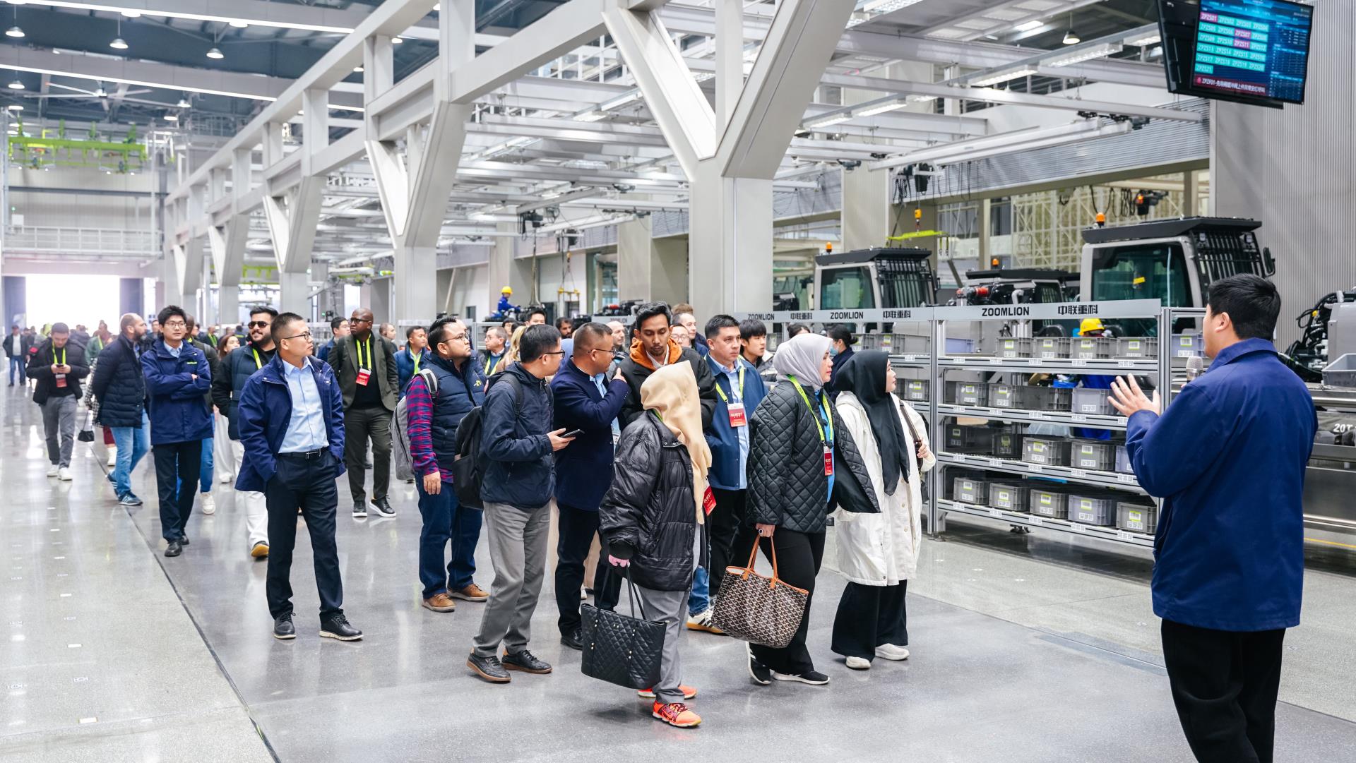 期間,海外客戶參觀了中聯(lián)智慧產(chǎn)業(yè)城土方機(jī)械園、高空機(jī)械園、起重機(jī)械園和混凝土泵送機(jī)械園等四大全球領(lǐng)先的智造園區(qū),觀摩了緊湊型設(shè)備聯(lián)合施工、綠色無人裝備演示。近距離親身感受,讓活動嘉賓對中聯(lián)重科引領(lǐng)行業(yè)的智造成果和智能化、綠色化水平贊嘆不已。