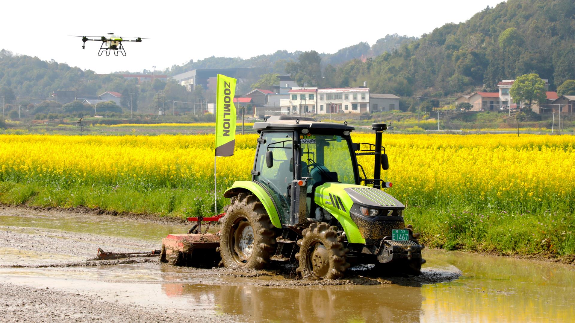 田地間,中聯(lián)重科水田拖拉機(jī)和履帶式旋耕機(jī)開足馬力開展耕整作業(yè),改善土壤結(jié)構(gòu)與肥力,為后續(xù)水稻種植做好準(zhǔn)備;搭載“中聯(lián)智駕”系統(tǒng)的水稻插秧機(jī)按照規(guī)劃線路自動行駛,在“北斗”定位技術(shù)的加持下,實(shí)現(xiàn)厘米級精準(zhǔn)插秧作業(yè),為水稻插秧環(huán)節(jié)提供更智慧的解決方案;中聯(lián)重科植保無人機(jī)騰空而起,靈活盤旋在農(nóng)田上空進(jìn)行施肥作業(yè)?!案⒎N、管”智慧無處不在,助力春耕提質(zhì)增效。
