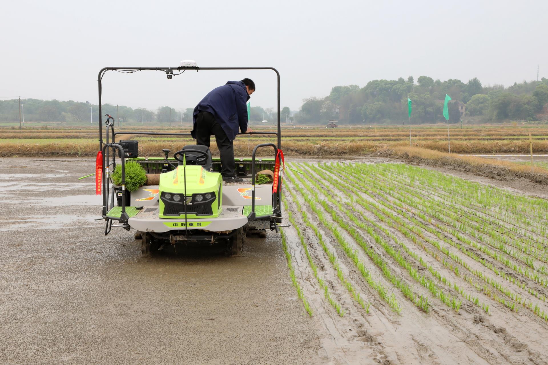 ▲中聯(lián)重科智能駕駛插秧機正在作業(yè)