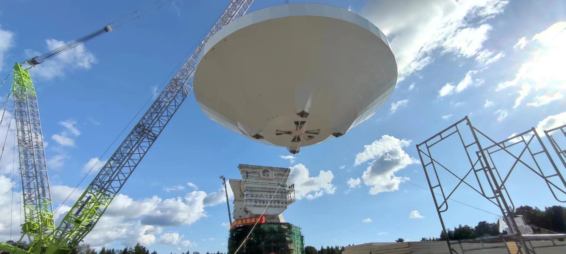 10月7日,由中國科學(xué)院上海天文臺與中國電科39所聯(lián)合研制的日喀則40米射電望遠(yuǎn)鏡,在西藏自治區(qū)日喀則市由中聯(lián)重科QUY650履帶式起重機(jī)順利完成天線系統(tǒng)主反射體吊裝,標(biāo)志著天線機(jī)械架設(shè)初步完成,為后續(xù)望遠(yuǎn)鏡電氣調(diào)試等聯(lián)調(diào)奠定了堅實基礎(chǔ)。