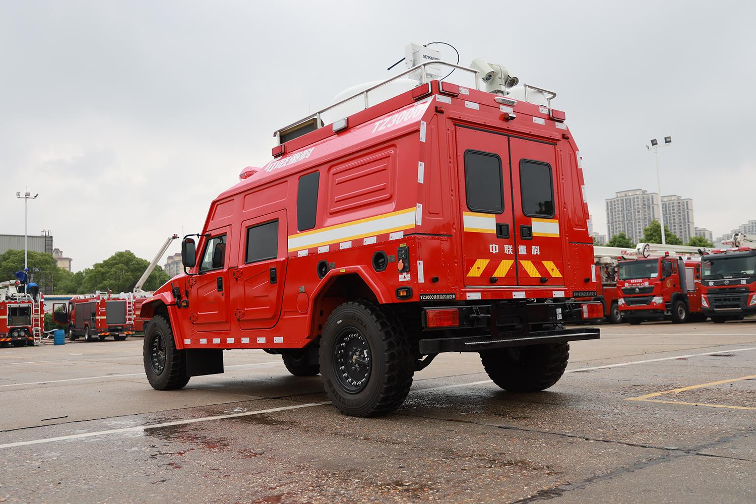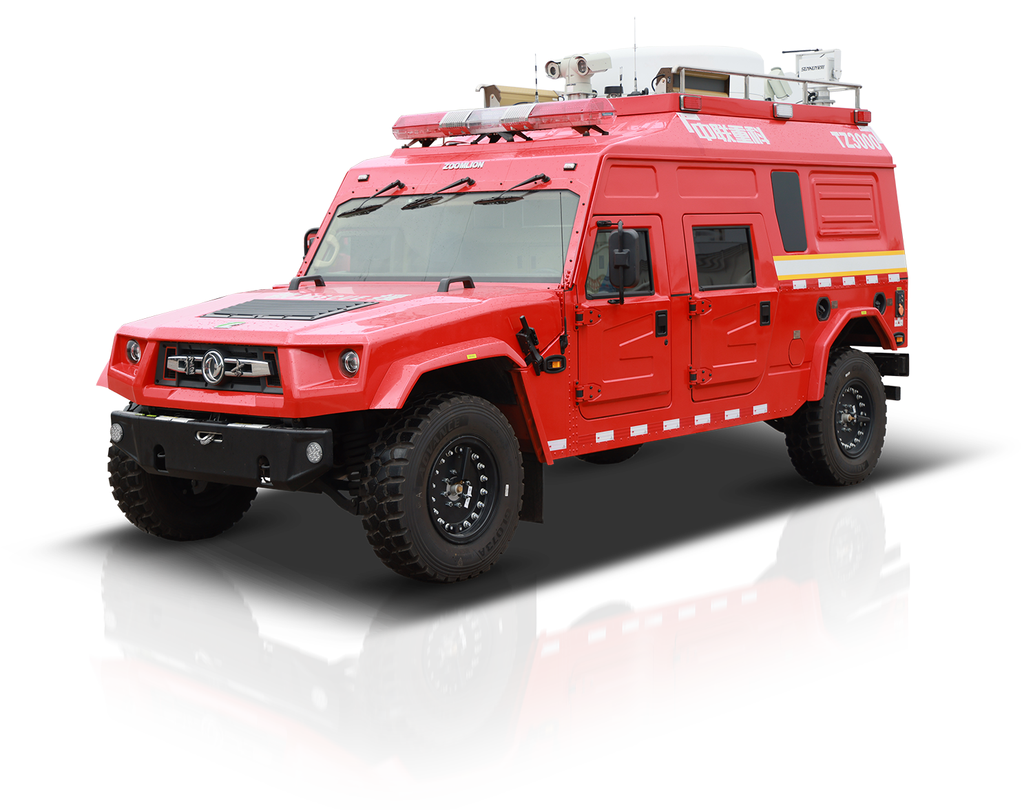 中聯(lián)牌TZ3000-6型通信指揮消防車,采用東風(fēng)猛士M50型4×4全驅(qū)專業(yè)軍用越野底盤,極大地提升產(chǎn)品越野性能,滿足應(yīng)急救援過程中快速反應(yīng)的使用需求,能夠**一時(shí)間到達(dá)現(xiàn)場并與指揮中心建立通訊,提高救援效率。