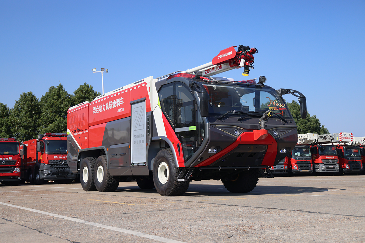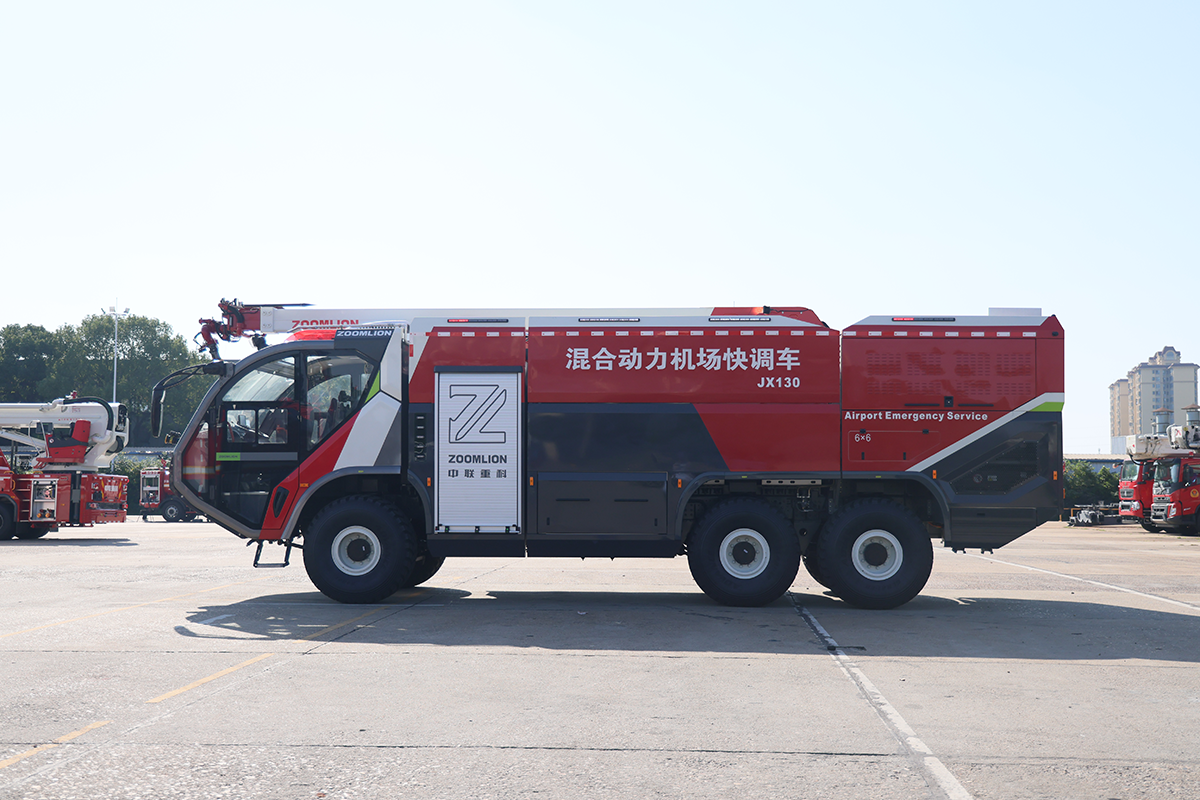 中聯(lián)牌JX130是國內首款混合動力驅動的機場快調消防車。該車采用雙動力驅動,具備超強的行駛加速性能;配有大容量滅火劑罐,搭載智能的滅火噴射系統(tǒng)和高強度穿刺臂,快速撲救飛行器火災,是各類機場必備的火災救援核心裝備。