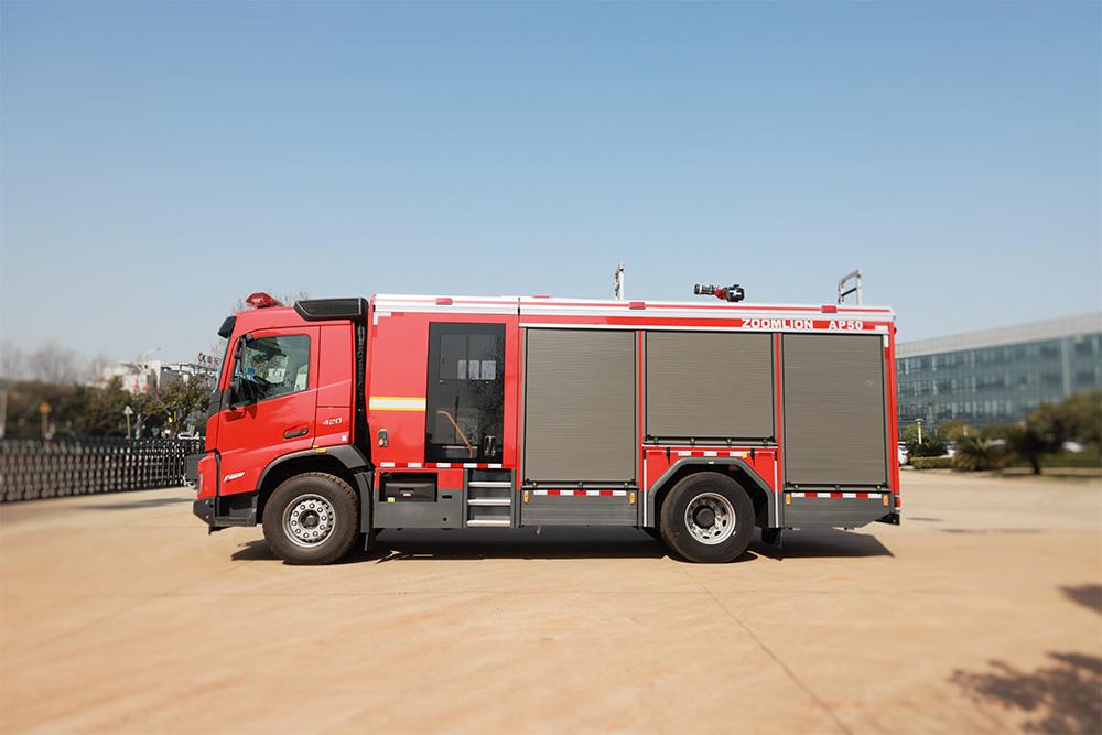整車裝備了先進(jìn)的壓縮空氣泡沫系統(tǒng),采用集成式控制面板,具有操作方便快捷、滅火效率高、環(huán)保、滅火造成的次生損失小等特點;全鋁合金車身,自重輕,強(qiáng)度高,防腐蝕性能好;器材箱采用專用鋁合金層架板搭接而成,可上下自由調(diào)節(jié),空間利用率高,器材配備多,取用方便;配置多項安全保護(hù)措施做到全方位防護(hù),保證車輛安全可靠;整車還裝備絞盤、升降照明系統(tǒng),可攜帶破拆工具、救生器具等多類器材,是火災(zāi)、抗洪、車禍等各類災(zāi)害滅火救援的主力車型。
