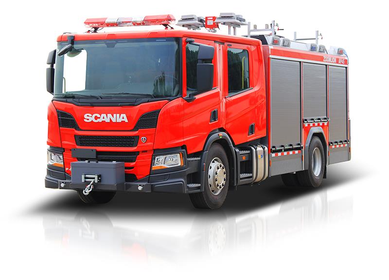 ? ? ZLF5180GXFAP45型城市主戰(zhàn)消防車選用原裝瑞典斯堪尼亞(SCANIA?5P410 4×2型二類底盤、裝備進(jìn)口全自動(dòng)壓縮空氣A類泡沫系統(tǒng)改裝而成。整車外形美觀、設(shè)計(jì)科學(xué)、匹配合理。