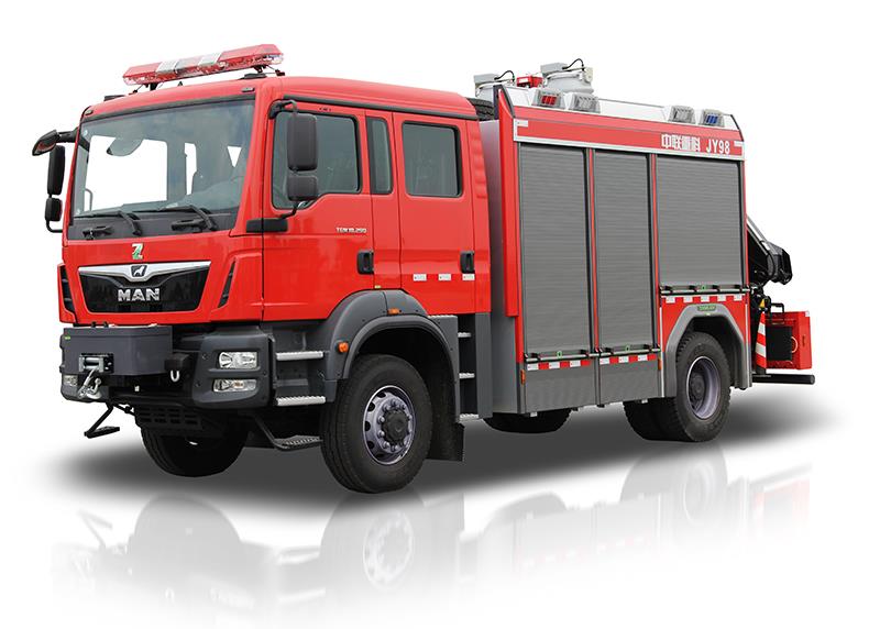 ??? ? ? ? 中聯(lián)重科ZLF5144TXFJY98型搶險(xiǎn)救援消防車(chē)是我公司應(yīng)用新技術(shù)、新工藝、新材料自主研發(fā)的新型主戰(zhàn)消防車(chē)。該車(chē)采用德國(guó)曼商用車(chē)輛股份公司TGM 18.290 4X4 BB型二類底盤(pán)改裝,結(jié)合國(guó)內(nèi)外搶險(xiǎn)救援消防車(chē)的先進(jìn)理念進(jìn)行創(chuàng)新設(shè)計(jì)而成,整車(chē)集照明、供電、牽引、起吊、破拆、偵查、救援等功能于一體的多功能消防車(chē),適用于裝備機(jī)場(chǎng)、碼頭、石化、高速公路、城市等消防場(chǎng)所,是公安消防部隊(duì)和企業(yè)專職消防隊(duì)必配的消防裝備。