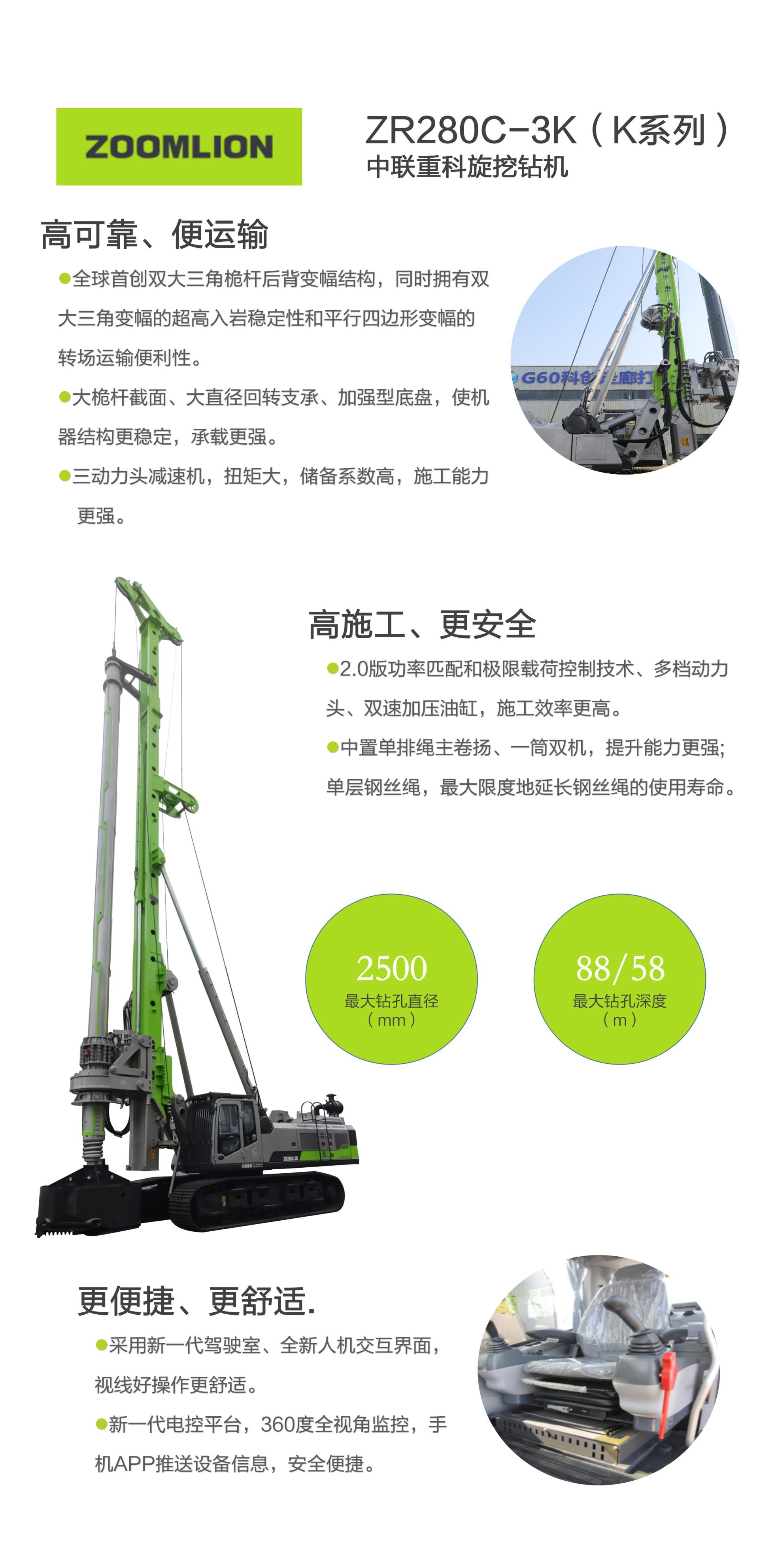 ZR280C-3K?旋挖鉆機(jī)性能參數(shù)表