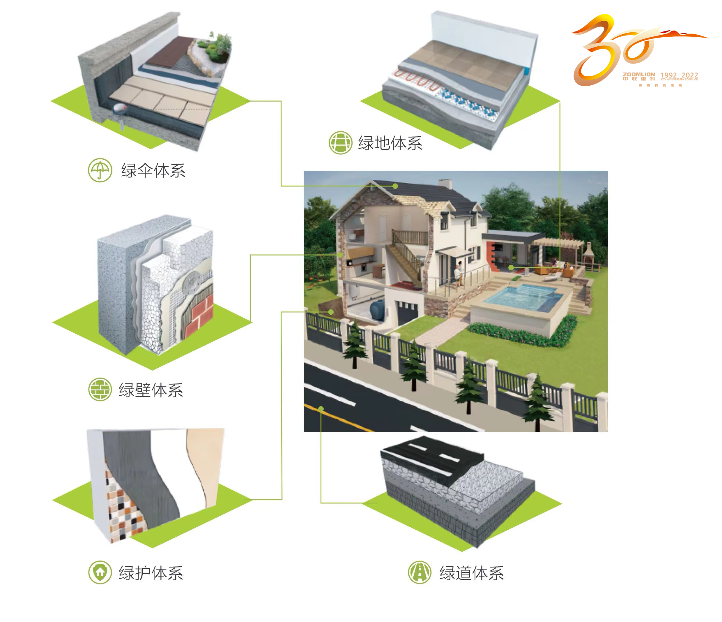 ▲中聯(lián)重科新材料的五大綠色節(jié)能建筑材料產(chǎn)品體系